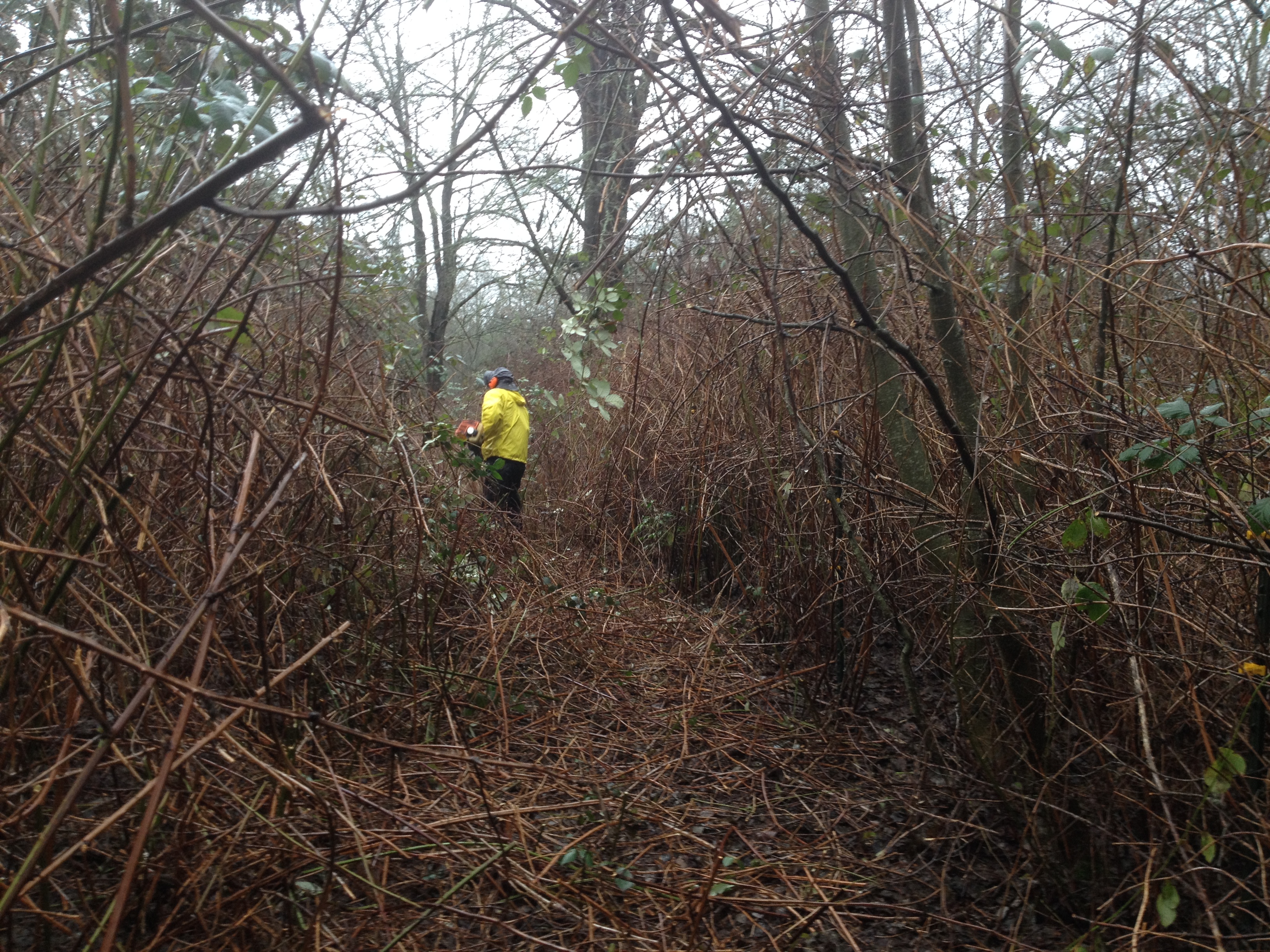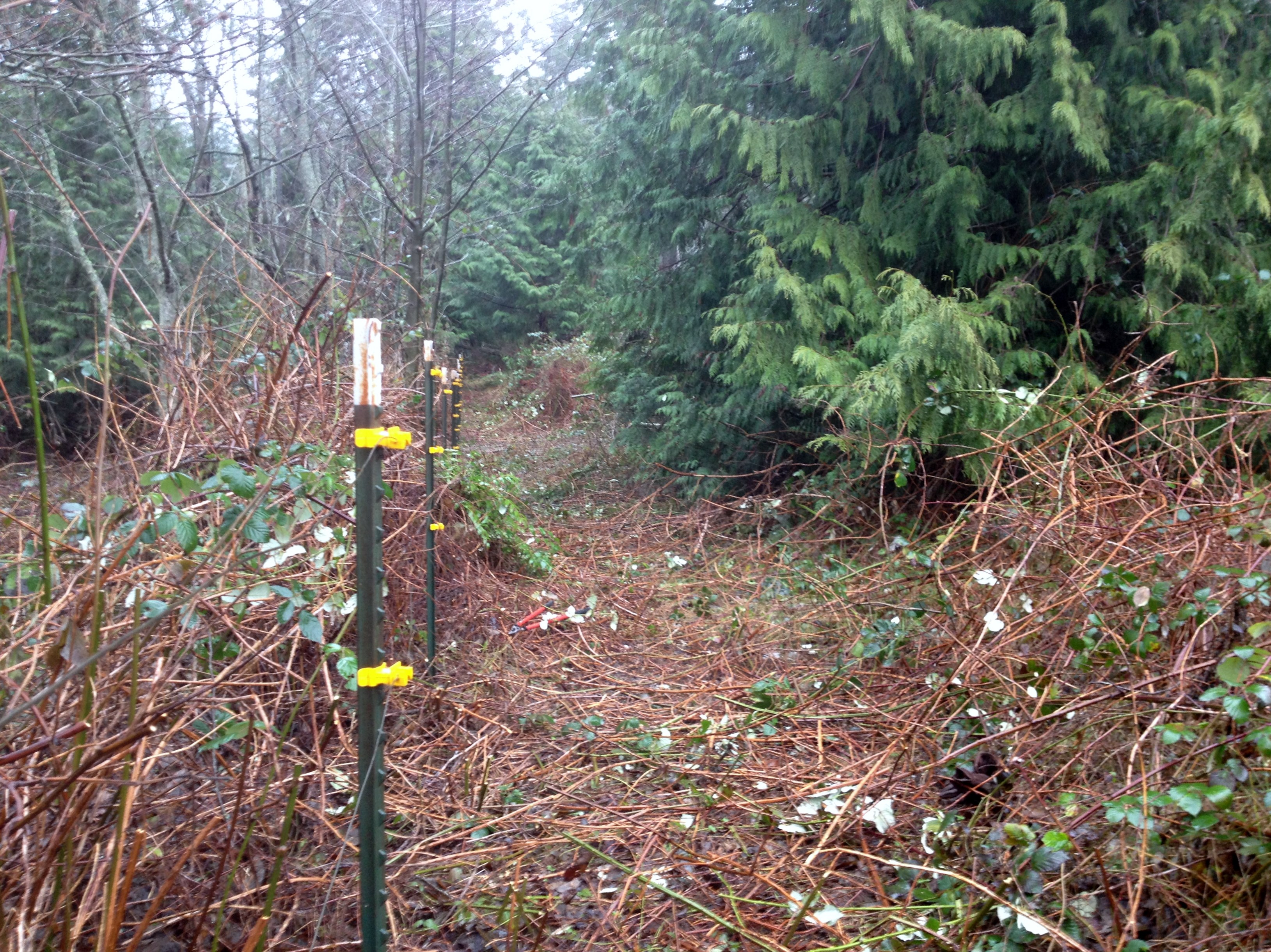 Today, we started the first step of clearing the blackberries and other brush from the existing fence line! My dad cleared the way with a brush cutter and chainsaw…
