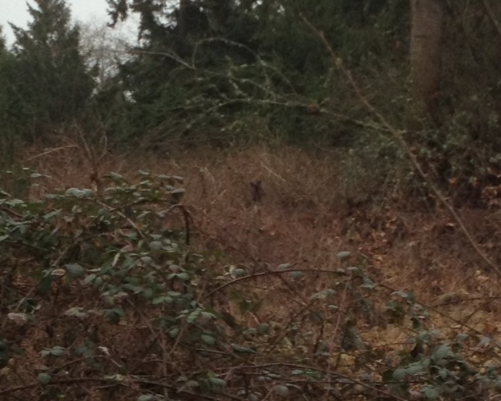 Some friends headed over to help and we needed them! On our first try, the plan nearly worked, but the deer turned at the last second and took off in the opposite direction of its gate to freedom. Every time we successfully got the deer up to the front of the property near the gate, it would turn and sprint back to the shelter of brush and trees. More than once, the four of us thought we were herding the deer through the brush, while the deer had snuck past us and was on the opposite side trying to find an opening in the fence.