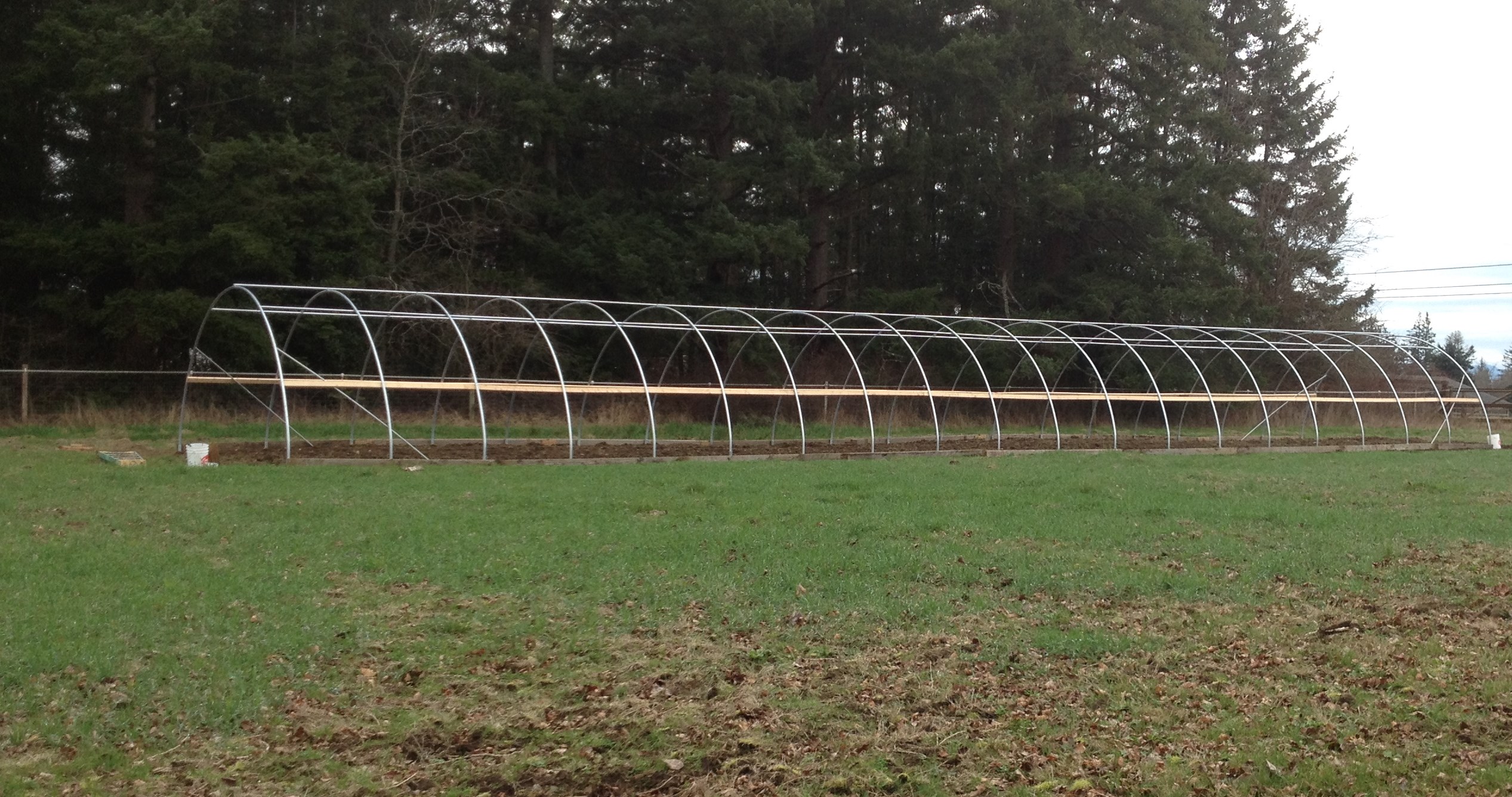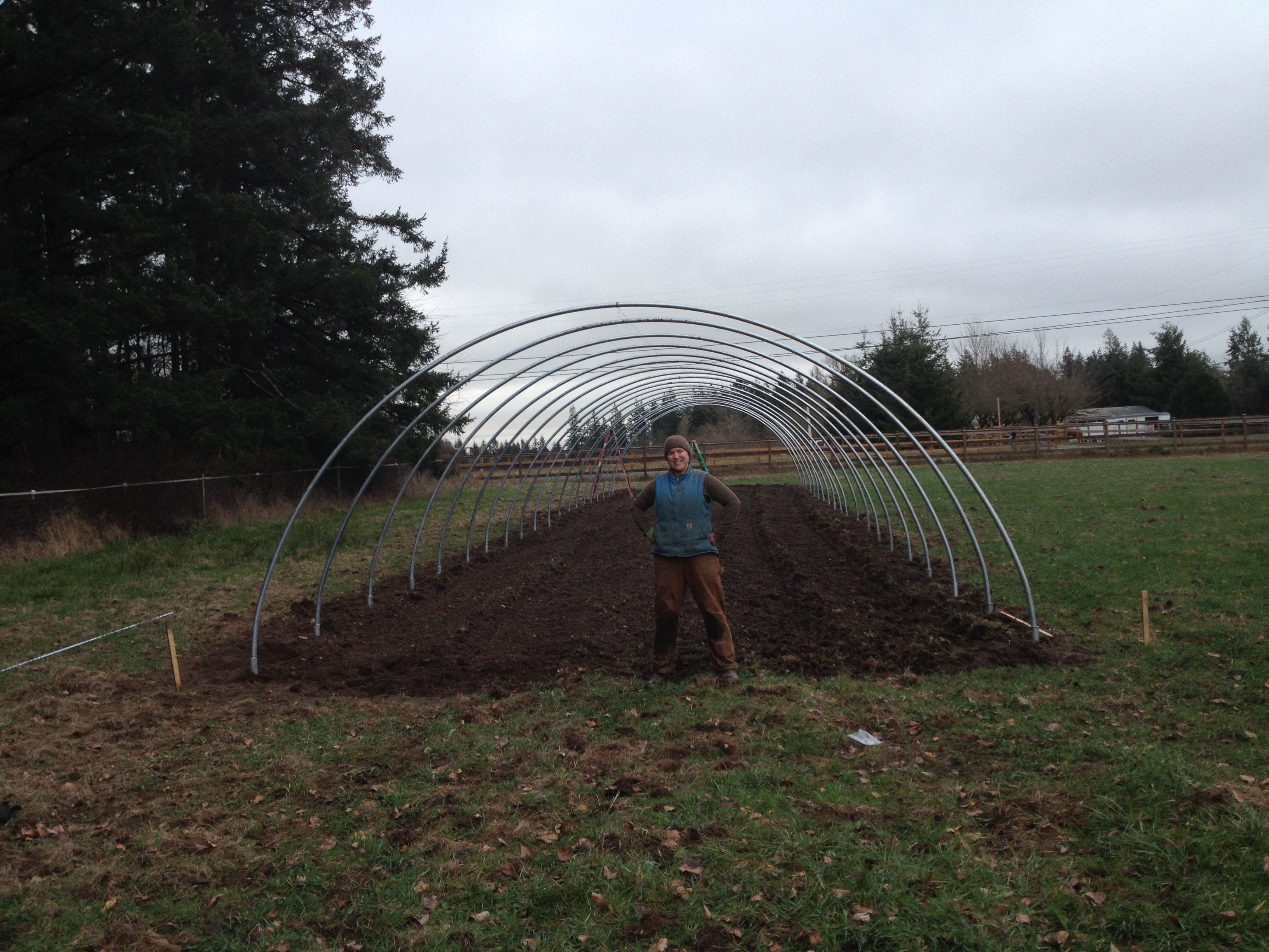 The hoops are up for my 20ft x 96ft hoop house and the plastic will go on soon! I just might direct seed lettuce, radishes, and mustard greens inside the hoop house to be harvested before the tomatoes are transplanted in late May!